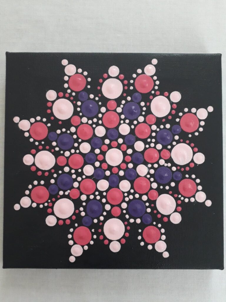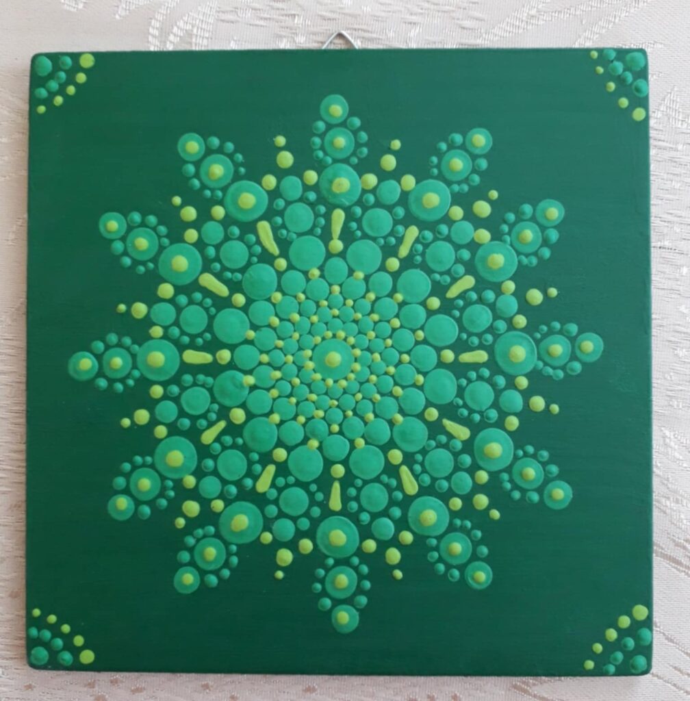 Üdvözöllek Szabó Melinda vagyok! A Pontozó Mandala festést 2021-ben kezdtem. A Mandalák készítése nem csak egy kreatív technika hanem valódi élmény,egy önismereti út.